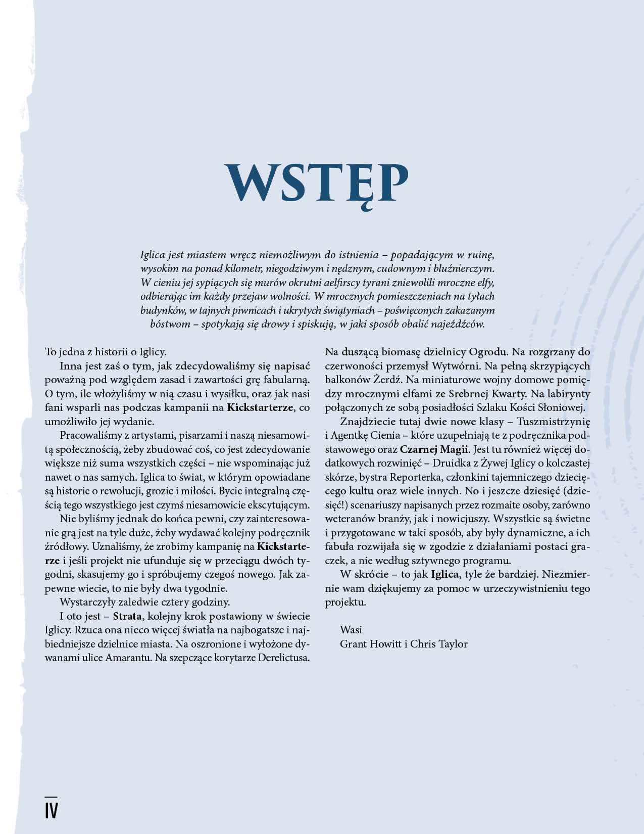 Strata skupia się na świecie Iglicy. W tym podręczniku źródłowym znajdziecie: