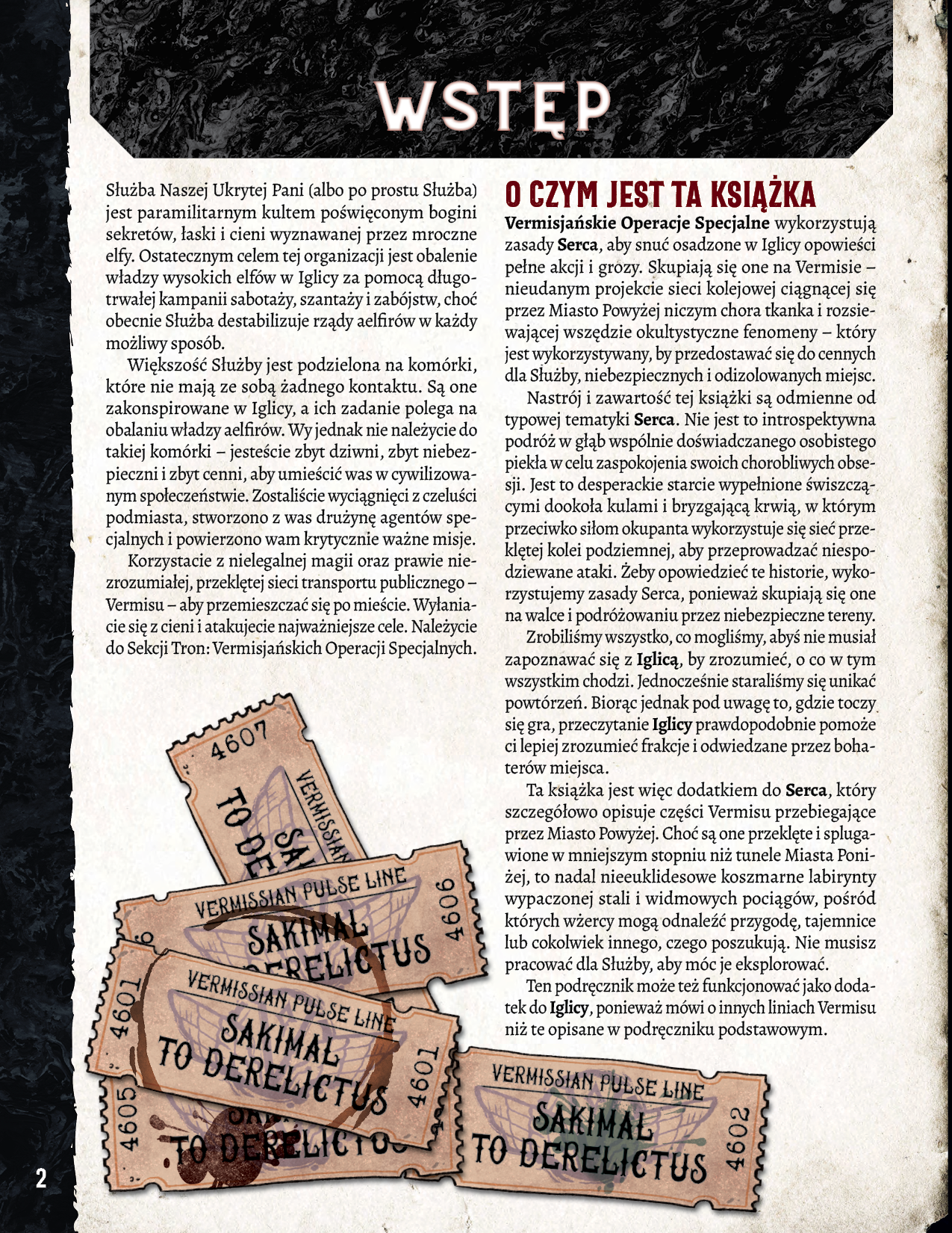 Ten podręcznik dodatkowy do gry fabularnej Serce zawiera rozszerzone i opcjonalne zasady, które pozwolą ci wysłać wżerców na niebezpieczne misje dla drowich rewolucjonistów. Znajdziesz tu również informacje o frakcjach, które nazywają Vermis swoim domem, oraz przewodnik po tworzeniu operacji specjalnych i opis wszystkich linii metra.